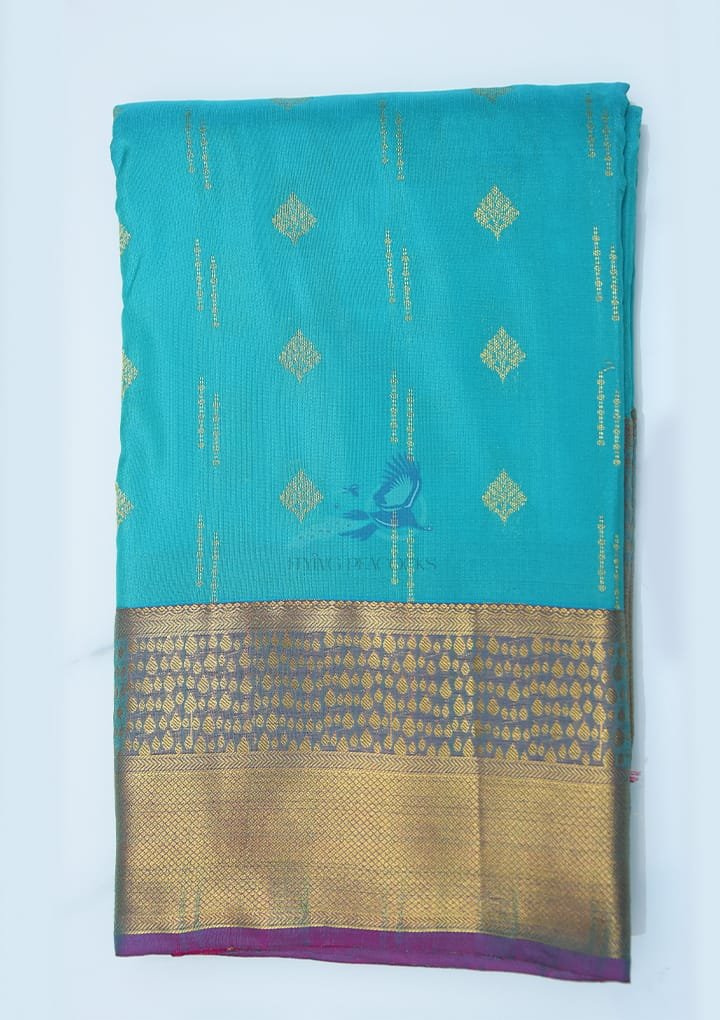 Crafted for those with a refined taste, this Pure Silk Blue Saree with Zari Butta Work exudes a sense of luxury and tradition. The rich blue body is adorned with intricate zari buttas, lending a sparkle of sophistication to your look. Its smooth, lustrous finish not only elevates any ensemble but is a perfect choice for weddings, festive gatherings, and formal events.