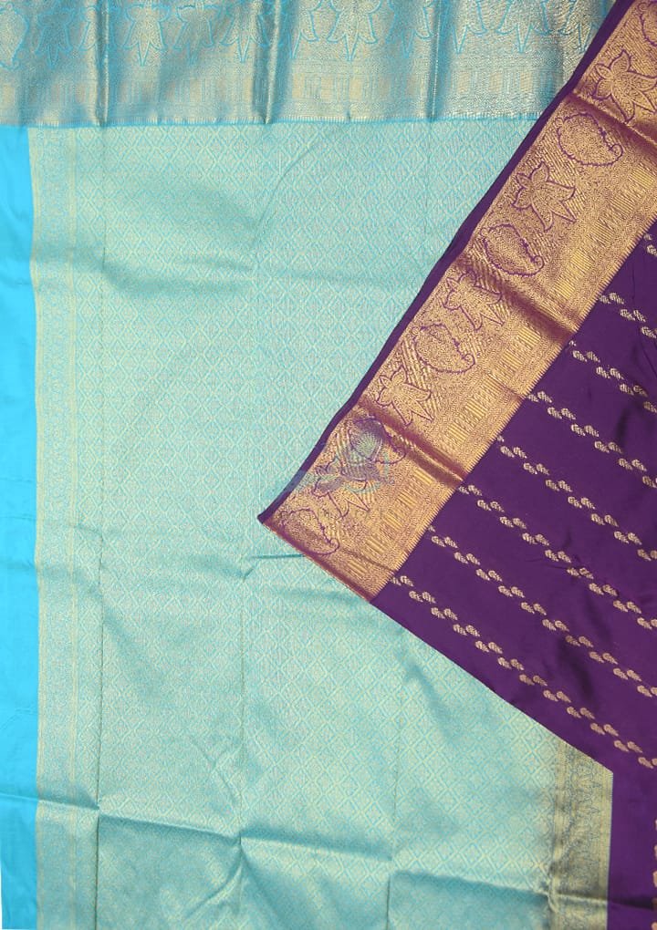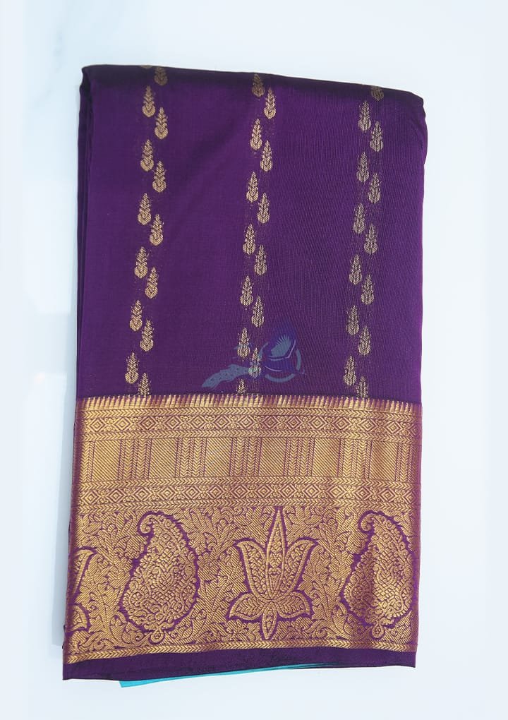 Experience the unmatched sophistication of our Pure Silk Violet Saree with Zari Butta Work. The premium silk fabric offers a silky-smooth feel, ensuring you exude refinement whether attending a wedding, festival, or formal occasion. The vibrant violet body, adorned with intricate zari buttas, reflects tradition and contemporary elegance, making it an essential addition to your saree collection.