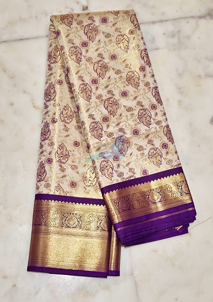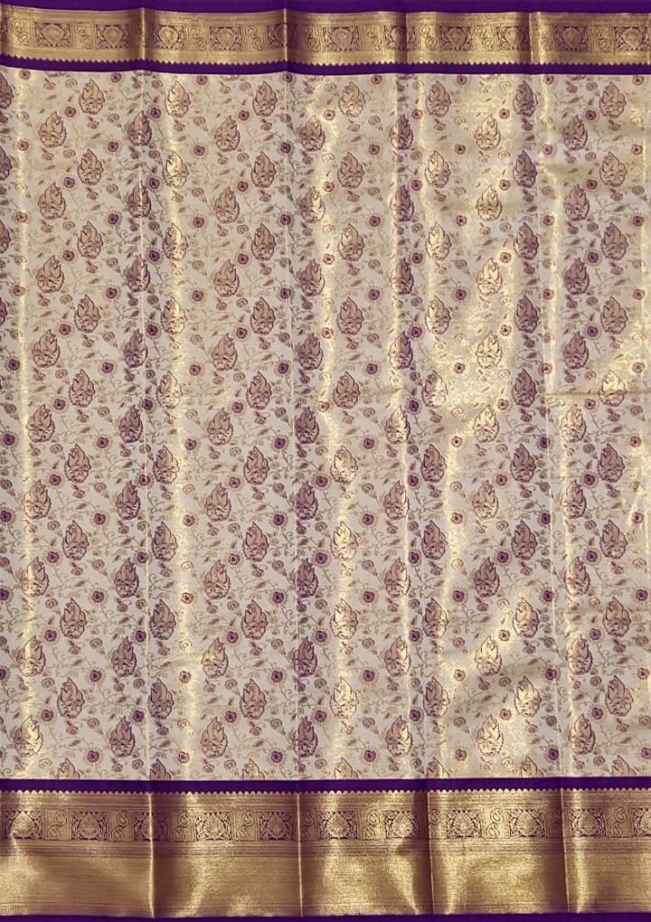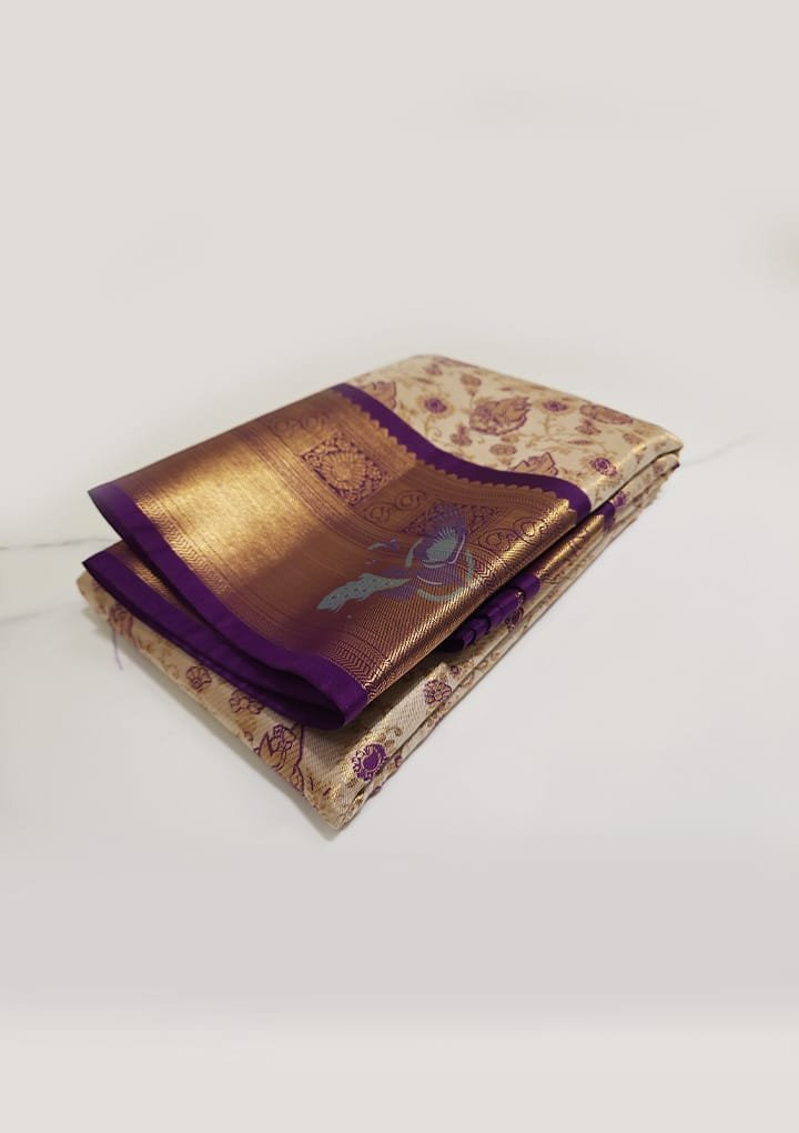The Full Tissue Zari Saree is a beautiful mix of luxury and tradition. Made from soft tissue fabric, it has delicate zari work that adds a touch of glamour. The gold and silver zari threads shine brightly, making it a perfect choice for weddings, festivals, and special events. This saree brings timeless beauty and a classy, refined look.