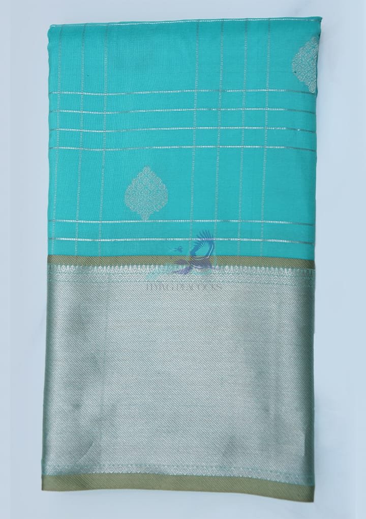 This Pure Silk Blue Saree with Check Small Butta Work embodies a unique blend of tradition and sophistication. The bold blue body, adorned with intricate check and small butta patterns, adds depth and elegance to your look, making it an exquisite choice for weddings, celebrations, or formal gatherings. Crafted for those with a refined taste, this saree promises unmatched grace in every drape.